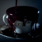 Fig. 1 En estos fotogramas podemos observar que la iluminación en Penny Dreadful es utilizada con la intencionalidad de crear espacios lúgubres y resaltar unos elementos sobre otros. Por ejemplo, en la imagen de la izquierda nos percatamos de la utilización de una iluminación que ensombrece gran parte del encuadre, pero destaca la taza mientras se desborda la sangre y en la imagen de la derecha, el uso de una iluminación dura hace que resalte la palidez de Vanessa Ives, uno de los personajes principales.