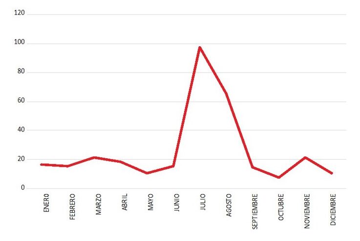 Gráfico 1. Casos por mes.